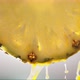 Slow Motion Macro Shot of Flowing Pineapple Juice from Pineapple slice. High quality 4K footage