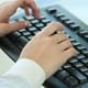 Female worker typing quickly