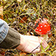 Fly agaric, collection mushrooms in autumn forest
