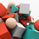 3d motion graphics, dynamic geometric shape cubes, cones, spheres and other