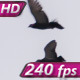 Many birds on background cloudy sky. Slow Motion at a rate of 240 fps
