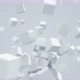 3D rendered animation of white flying cubes, 4k, loop