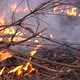 forest fire on the slopes of hills and mountains. Wild fire in tropical forest. Large flames from forest fire. Summer forest fires. Smoke of a forest fire obscures the sun. Natural disasters. Firefighters extinguishing the forest fire.