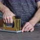 Framing Workshop. Making assembly stapler brackets baguette handmade picture frame at studio.
