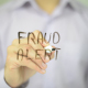 Man, Businessman, entrepreneur, stock trader, analyst or banker writes on transparent wall : Fraud Alert