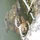 Two toads captured in close-up. Frog in mating season.