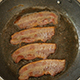 Frying bacon on a pan. Full HD,1920×1080. 0:12 Sec.