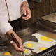 The cook is making fried eggs.