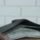 Full wallet. A male hand slowly pull dollars from the wallet on the table.