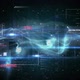 Digital animation of a futuristic interface with different graphs and data moving in the screen while smoke-like light moves in the foreground.