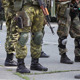 Armed troops gathering for a military training