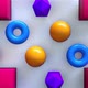 Low poly 3d render of sphere with simple cubes. Minimalist rings in trendy movement dynamic primitivism. Vivid shapes with highlights and creative glossy installation elements