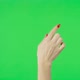 Gestures pack. Female hand touching, clicking, tapping, sliding, dragging, zoom in, zoom out and swiping on chroma key green screen background. Using a smartphone, tablet pc or touchscreen. Interface concept. Close up.