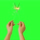 Woman or girl hands with neutral manicure holding two fireworks sparklers crossed into X sign. Keyed green screen chroma key background. Celebration holiday or new year concept.