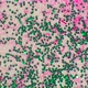 This stock video features a glittered background of green and pink.