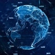 This is a motion stock graphic that shows a spinning digital projection of planet earth surrounded by dozens of particles and lines and changing numbers.