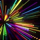 abstract 3d loop background with glowing particles lined up in a row in 3d space. Festive vj loop with multicolored particles and smooth animated camera. Motion design background
