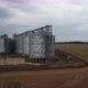 Grain elevator. Metal grain elevator in agricultural zone. Agriculture storage for harvest. Grain elevators on green nature background. Exterior of agricultural factory