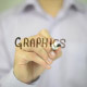 Man, Businessman, entrepreneur, freelancer, software engineer, programmer writes on transparent wall : Graphics