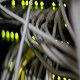 Details of gray cables on the network server. Blinking LED lights indicating operational status. Neutral color grading used; colors can be corrected later on post production. Long clip over 30 seconds with multiple rack focuses used – focus on different parts of server. Clip can be cut to small parts and reused by user.