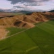 Green fields in beautiful landscape of New Zealand. Aerial footage.