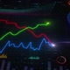 Growing lines chart graph. Financial business diagram with bars, pies, and stock numbers. Stock Market Chart background. Neon Colorful infographics HUD. Business and finance worldwide grow concept