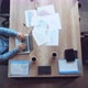 top view businessman typing on a laptop sitting at the desk with different charts documents with diagrams. man wearing casual denim shirt working in a modern office