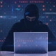 Hacker using laptop against digital screen