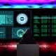 A man-hacker sits at a laptop against the background of a database with personal data, a digital radar. Abstract designation of data security on the Internet. Ideal for materials about information security, hackers, activities on the darknet