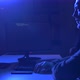 cybercrime, hacking and technology concept – male hackers in dark room with code on computer screen using virus program for cyber attack