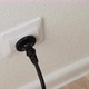 Hand Inserting black Power Plug into an white Electricity Socket.