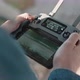 Hand of a Drone Operator man while pilot a quadcopter remote controller. Close-up shoot