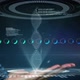 Animation of a hand touching a virtual interface with medical data on a dark background