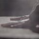 A video of a pair of hands hitting a table hard raising the dust into the air.
