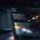 Tracking closeup of hands of computer programmers typing on keyboards at desk in the office at night