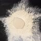 Hands release the dough, which falls into the flour scattered on a dark wooden surface. Slow motion.