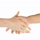 Caucasian men shook hands over white background