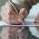Close-up of a female worker writing a document by hand
