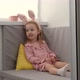 Happy Easter. Preparing family for Easter. Easter bunny ears. Little girl wearing bunny ears. Smiling face.