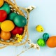 Happy easter. Colorful hand painted easter eggs. Handmade easter craft. Spring decoration background. Holiday still life slow motion, concept for spring holidays.