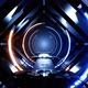 HD loop 3D animation. Abstract interior sci-fi spaceship corridor with yellow and blue neon glowing tube lights reflections. Futuristic design spaceship interior in blue background