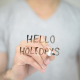 Man writes on Transparent screen : Hello Holidays