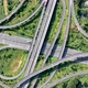 Aerial view of highway interchange Road junction Aerial photo of a highway going through the forest