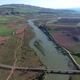 Cinematic 4K 60 fps. A river is a natural flowing watercourse, freshwater flowing towards an water. Small rivers can be referred to using names such as stream, creek, brook, rivulet, and rill. Turquoise lowland geography topography floodplain flood plain run burn beck nature drainage basin alluvial alluvium large big slow flow winter spring symmetrical and flat aerial potamic fluvial drone fly nile wide riverbed amazon yangtze floods mississippi missouri field fields volga brown background landscape view nature natural bright true simple standard road way highway bridge mekong loire oder warta aras brazos vltava ottawa vistula tagus UHD 3840X2160.