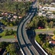 This video captures an aerial hyperlapse of the highway interchange at Mcdowall in Queensland, Australia, on sunny morning.