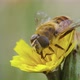 Macro of a hoverfly (Syrphidae) sitting on a yellow flower and eating pollen from its legs in slow motion.