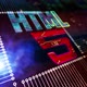 HTML5 development symbol, web programming language icon, internet technology and www network coding concept. 3D symbol flying over computer board circuit. Loopable seamless abstract background.