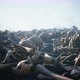 Old human skulls and bones left over from the battle. The concept of war and the Apocalypse.