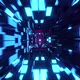 This is a stock motion graphic that shows super speed flight through a neon blocky tunnel.