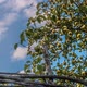 Hyperlapse from wicker fence to apple tree, beautiful autumn landscape, time lapse in camera movement.
